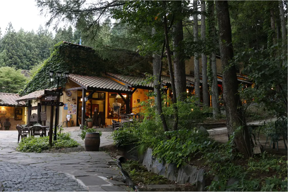 まるで中世ヨーロッパの街に迷い込んだかのような石畳の小道。その一角に、旅人をやさしく迎える小さなショップがあります。「ハートバザール」は、西洋の古城・ロックハート城の世界観をそのままに、可愛らしい雑貨やお土産が集まる場所です。