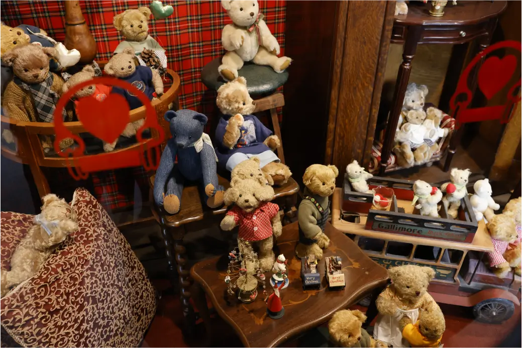 海外から集められた200体のテディベアが並ぶ、心温まるミュージアム。アンティーク家具に囲まれた小さな空間で、やさしい時間が流れます。ロックハート城の敷地内に佇む「テディベアミュージアム」は、静かで心和む小さな世界です。海外から集められた200体のテディベアたちが、アンティーク調の棚やテーブル、ショーケースの上に並び、それぞれが長い歴史と物語を抱えているかのように見つめ返してくれます。