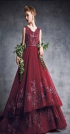 情熱的で華やかな印象を与える王道カラー。ひと目見ただけで存在感があり、ゲストの記憶に強く残ります。大人っぽく凛とした雰囲気を演出したい方や、ドラマティックな披露宴を希望される方にぴったりです。ワインレッドやボルドーなど深みのあるトーンならより高級感が増し、クラシカルな会場にもよく合います。