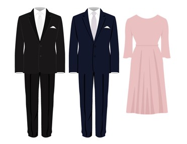 暗い色味のかっちりしたスーツや、パンツスーツはビジネス用に見えてしまう場合もあるので、避けたほうが無難でしょう。