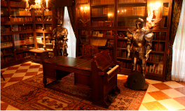 趣深いライブラリーをはじめ、優雅な城内の装飾に囲まれながら時代を超えて再現。中世ロマンの至福の時間を