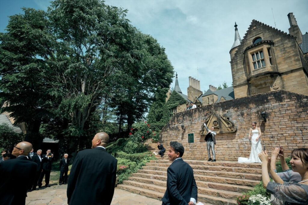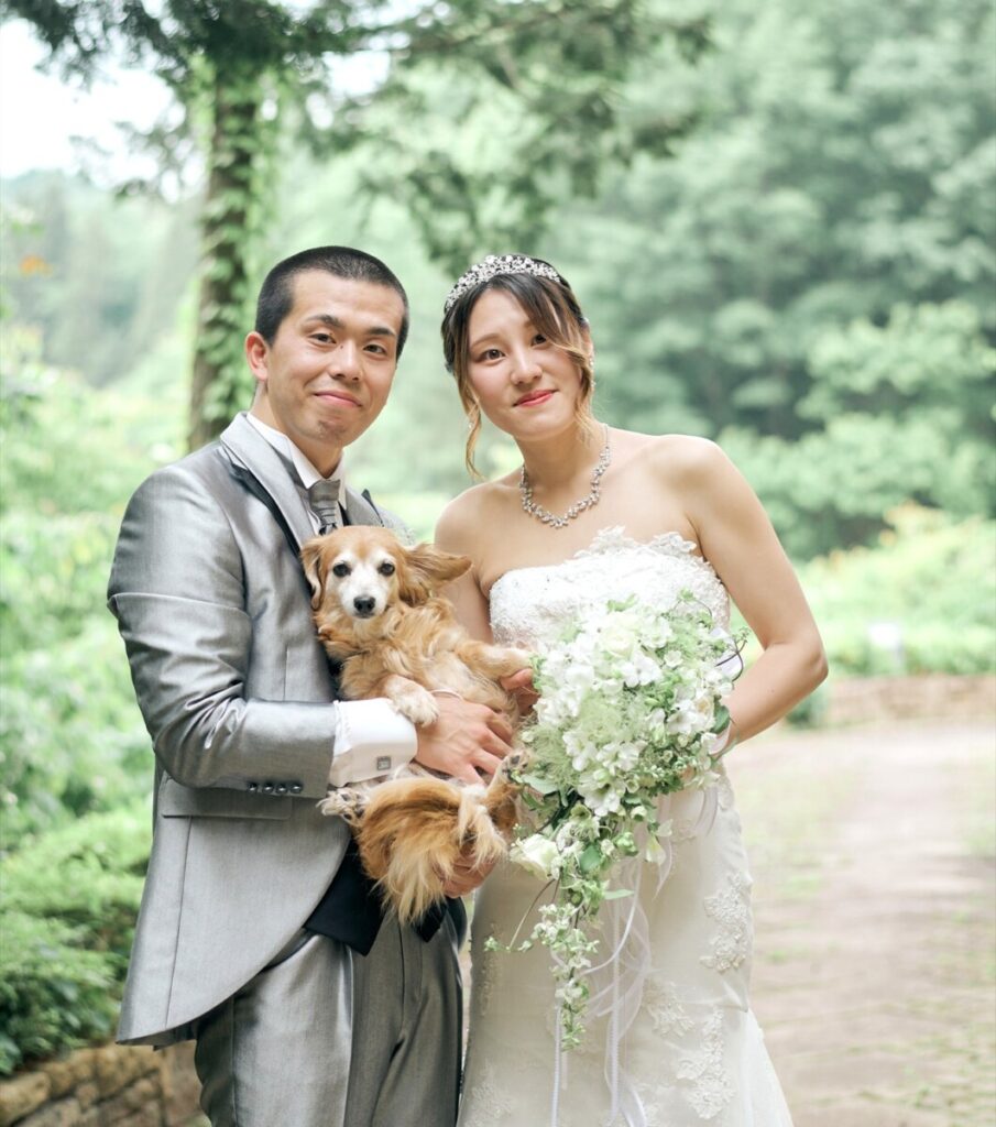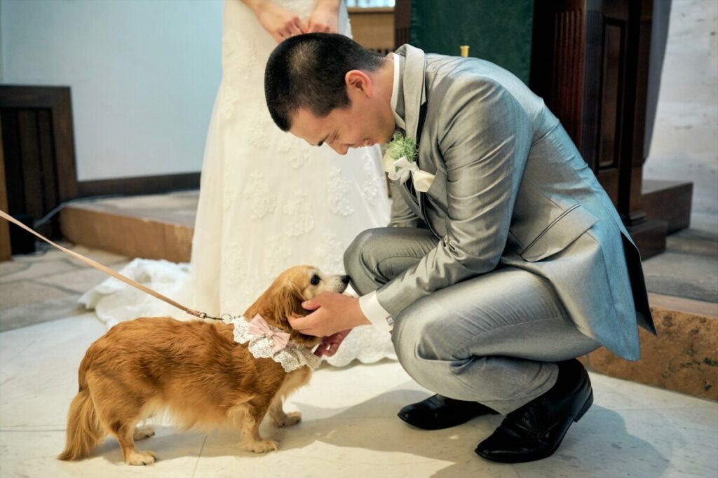 - 静かな中とても緊張感のあるスタートでしたがゲスト様の顔、ちょっと笑える小さなアクシデントのお陰で徐々に力も抜けて取り組めました。 リングドッグも可ということで実家で飼ってる子にしてもらいました。 ブーケトスも晴天の中行え、新婦側ゲスト様のナイスキャッチの後、それに対抗して行ったブロッコリートスは新郎側の趣味である雷魚釣りの道具を用いて笑いがあるトスが行えました!